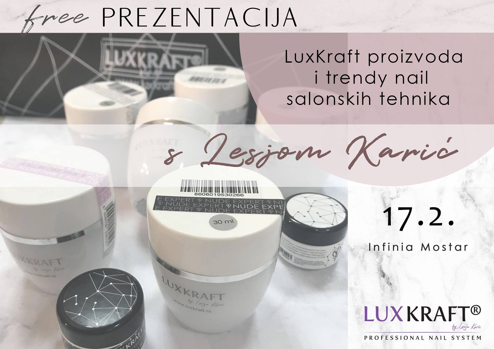 Besplatna prezentacija LUX KRAFT proizvoda za nokte i trendy nail salonskih tehnika sa Lesjom Karić u Mostaru 17.2.